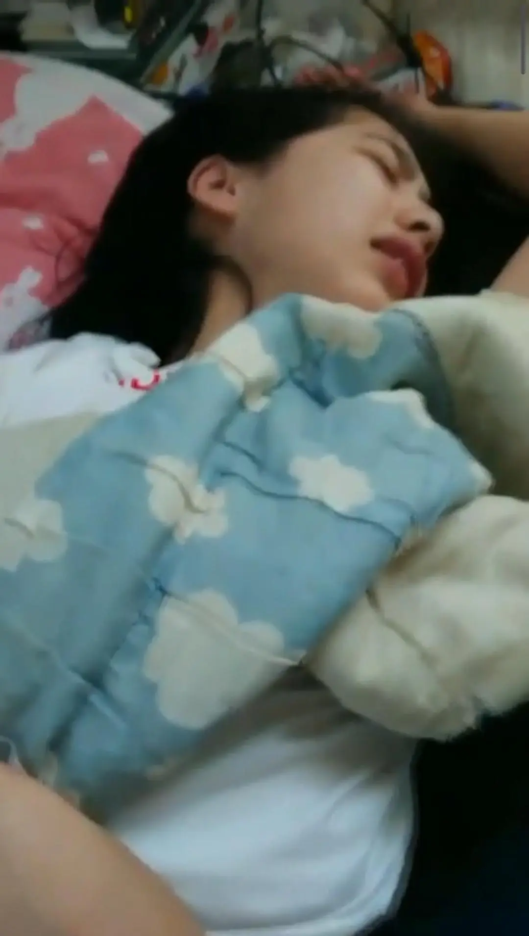 The girl starts with a playful smile, slowly unbuttoning her shirt, revealing her flat stomach and the lace of her bra. She teases the camera longer before finally letting the shirt fall, exposing her perfect boobs in a sheer bra. Her hands slide down to her jeans, popping the button and pulling them off with a wiggle of her hips. Now in just her underwear, she turns to show her firm ass. Finally, she slips off her panties, standing completely nude. She sits down and spreads her legs, giving a perfect view of her tight, wet pussy.